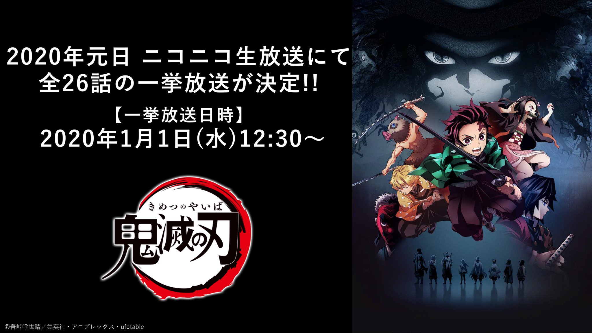アニメ 鬼滅の刃 お正月spとして元日に ニコニコ生放送 にて全26話