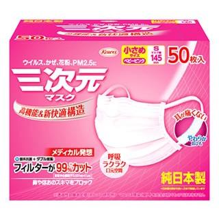 興和新薬 三次元マスク 小さめ Sサイズ ベビーピンク 50枚 三次元