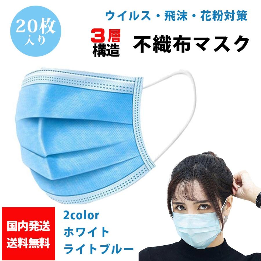 マスク 不織布マスク 20枚入り 三層構造 フェイスマスク 男女兼用 使い