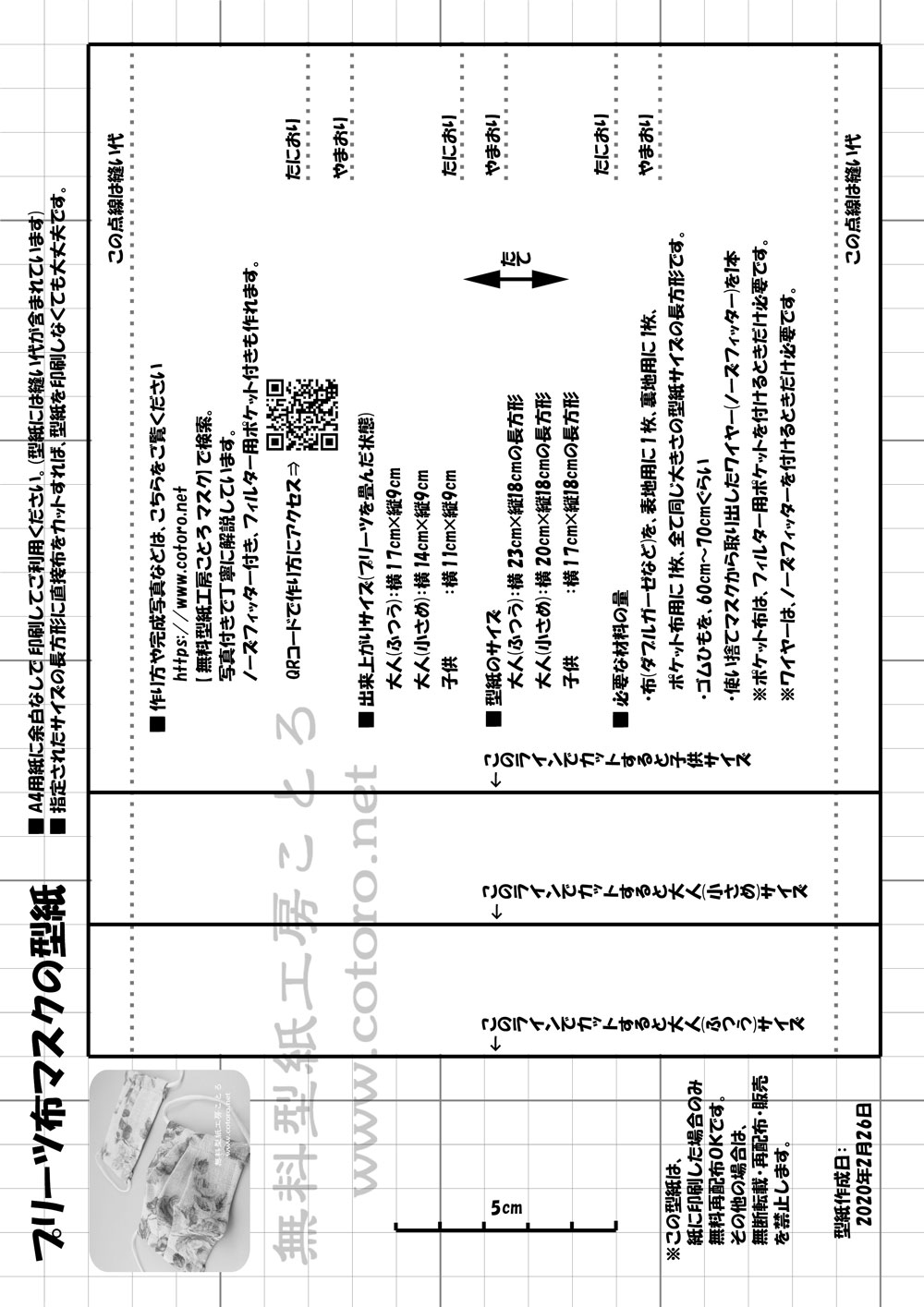 無料型紙工房ことろ On Twitter プリーツ布マスクの型紙を作りました