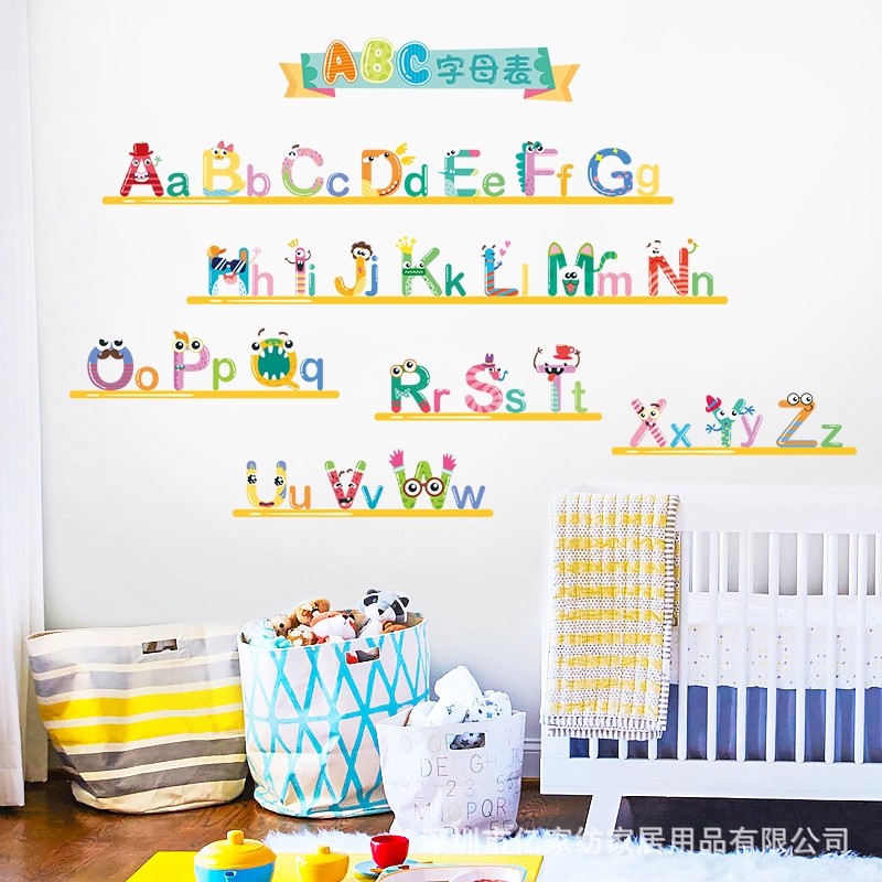 壁貼英文字母表兒童早教貼紙自粘可愛動物壁紙壁貼幼稚園臥室牆面裝飾