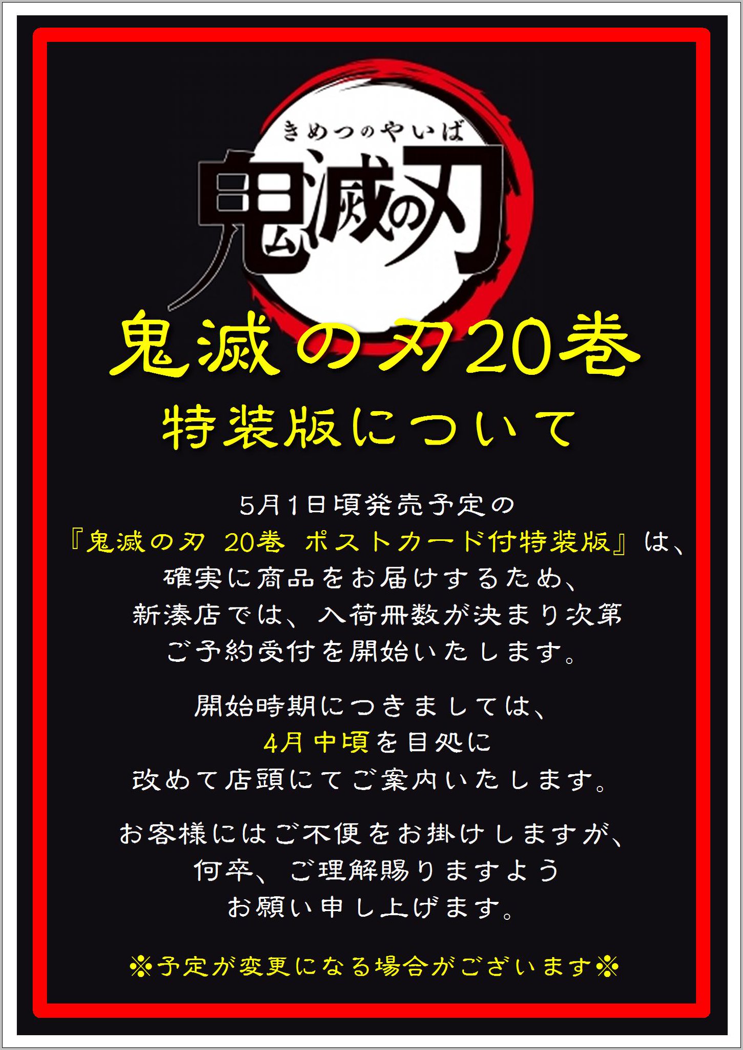 明屋書店空港通店 On Twitter お客様へお知らせ 鬼滅の刃20巻は